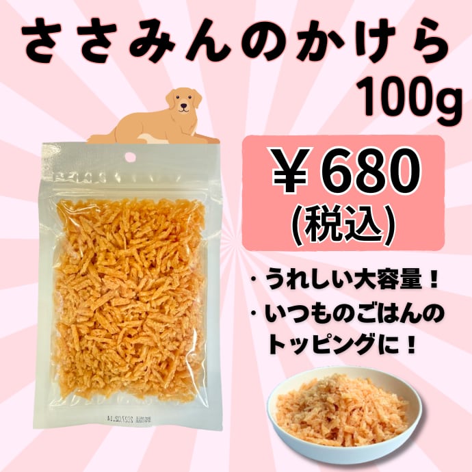 製造工程で生まれたささみんのかけらがたっぷり100gで登場!